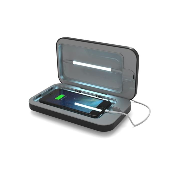 Maak PhoneSoap 3.0 onderdeel van je dagelijkse hygiëne. Dit is de derde generatie van het eerste mobiele telefoon oplader die je telefoon reinigt en desinfecteert terwijl hij oplaadt. PhoneSoap doodt 99,99% van de bacteriën en virussen, zodat je je dagelijkse laadroutine kunt aanvullen met een desinfectieproces. Met PhoneSoap is een opgeladen telefoon een schone telefoon.